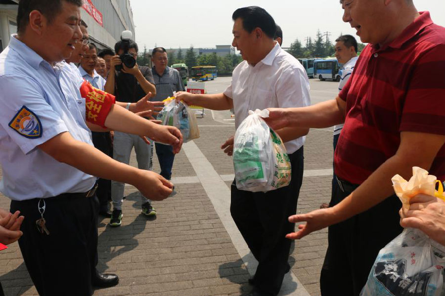 慰問(wèn)組將清涼飲品、防暑藥品、慰問(wèn)金等物資親自送到駕駛員手中,并叮囑駕駛員合理安排時(shí)間,注意休息。梅局長(zhǎng)在現(xiàn)場(chǎng)詢問(wèn)了目前高溫條件下公交車輛生產(chǎn)運(yùn)營(yíng)的情況,對(duì)奮戰(zhàn)在一線的職工不辭辛苦、任勞任怨的付出給予了肯定。同時(shí)強(qiáng)調(diào)高溫酷暑天氣還將持續(xù)一段時(shí)間,東城公交要做好一線員工和駕駛員的防暑降溫工作,加強(qiáng)隱患排查,全面防范各類安全事故發(fā)生,切實(shí)保障駕駛員的身體健康和人身安全的同時(shí)為乘客打造一個(gè)安全、舒適的夏日出行環(huán)境。