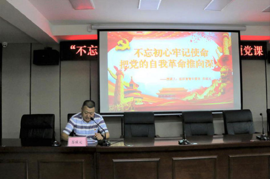大會在莊嚴(yán)的國歌聲中拉開序幕。隨后,由支部書記舒渝同志、宣傳委員胡忠同志、紀(jì)檢委員張衛(wèi)同志、組織兼青年委員蘇成元同志分別以《“不忘初心、牢記使命”主題教育》、《我是黨員我奉獻》、《以案為鑒,警鐘長鳴》、《把黨的自我革命推向深入》為題,為參會人員上了一堂內(nèi)容豐富、主題鮮明的黨課。