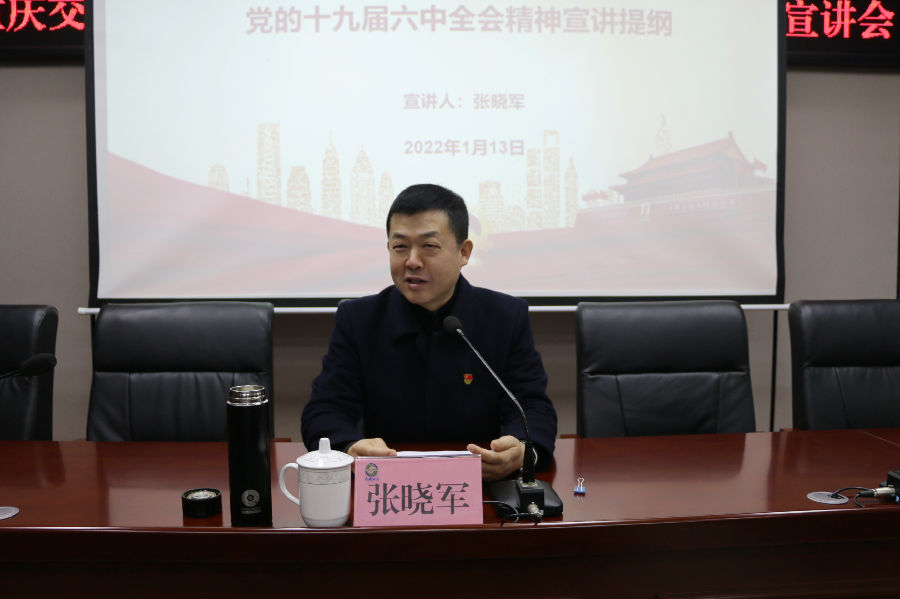 張曉軍從“深刻認識總結(jié)黨的百年奮斗重大成就和歷史經(jīng)驗的重大意義”、“深刻認識黨的百年奮斗的初心使命和重大成就”、“深刻認識中國特色社會主義新時代的歷史性成就和歷史性變革”、“深刻認識黨的百年奮斗的歷史意義和歷史經(jīng)驗”、“深刻認識以史為鑒、開創(chuàng)未來的重要要求”、“從黨的百年奮斗歷程中汲取智慧和力量”六個方面,對全會精神進行系統(tǒng)宣講和深入闡釋。